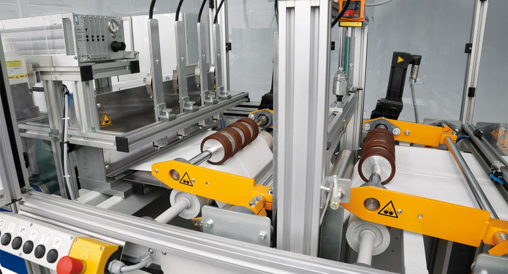 - 3-needle double-chain-stitch sewing head (feed-of-the-arm)