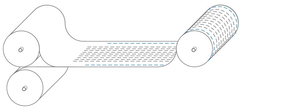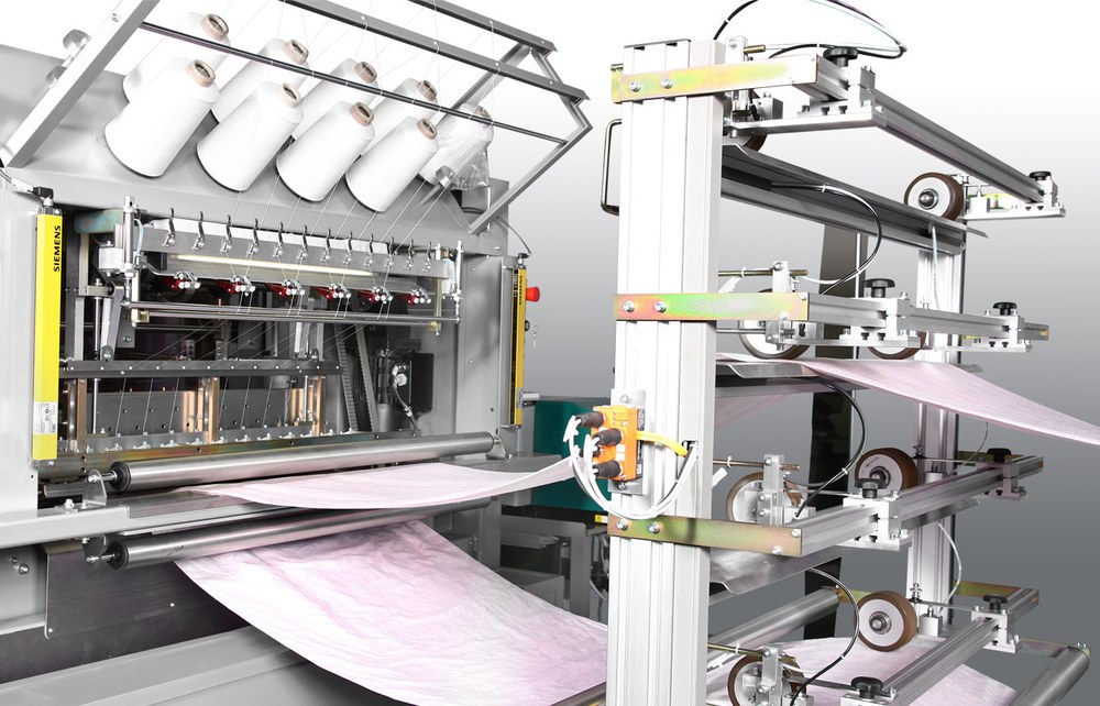 Double bottom seam Double bottom seam, cut to the desired filter pocket size by the overlock machines of the bottom seam station (depending on the orientation of the pocket) to the right or left side of the machine